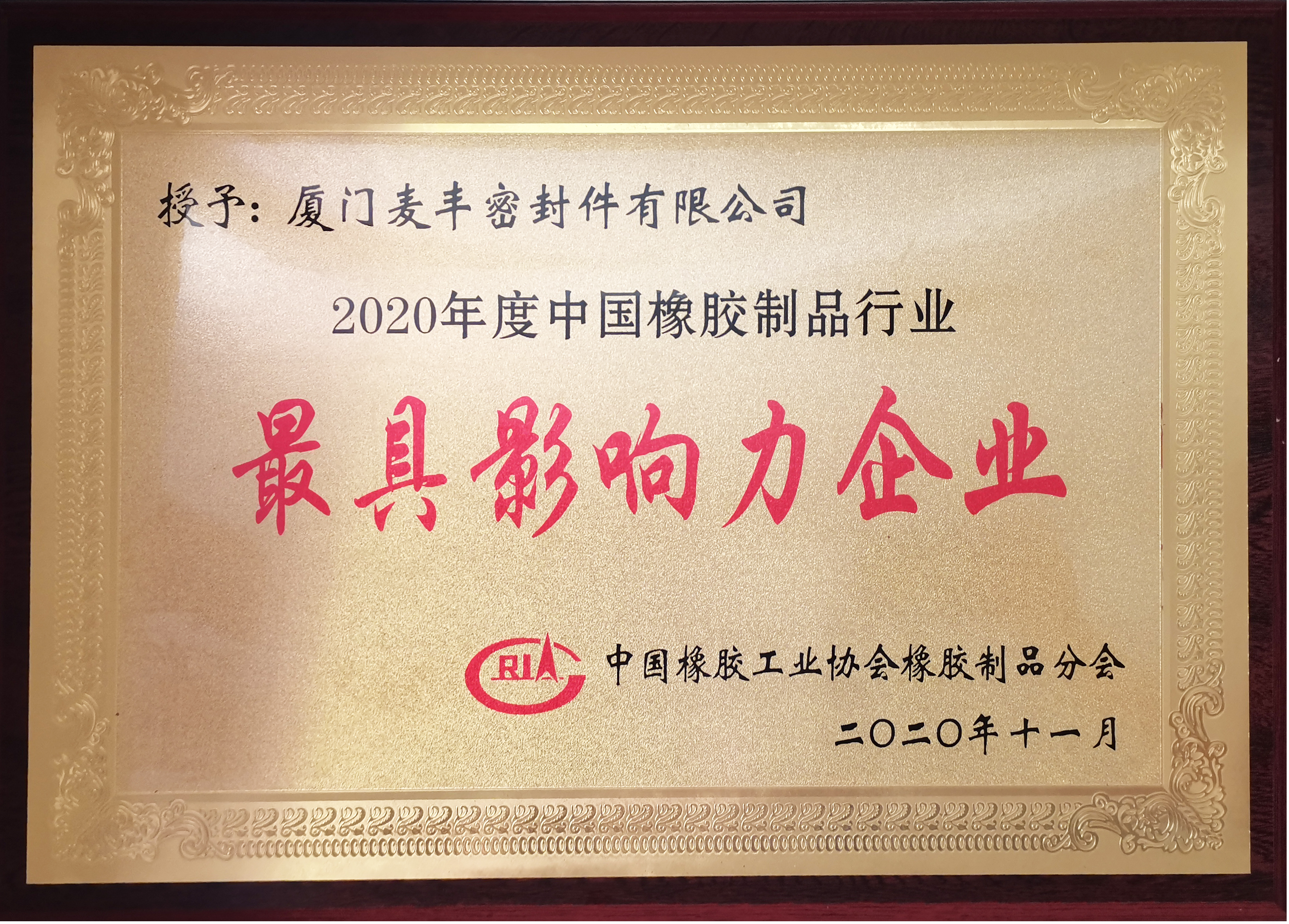 我司榮獲2020年度橡膠制品行業“最具影響力企業”稱號