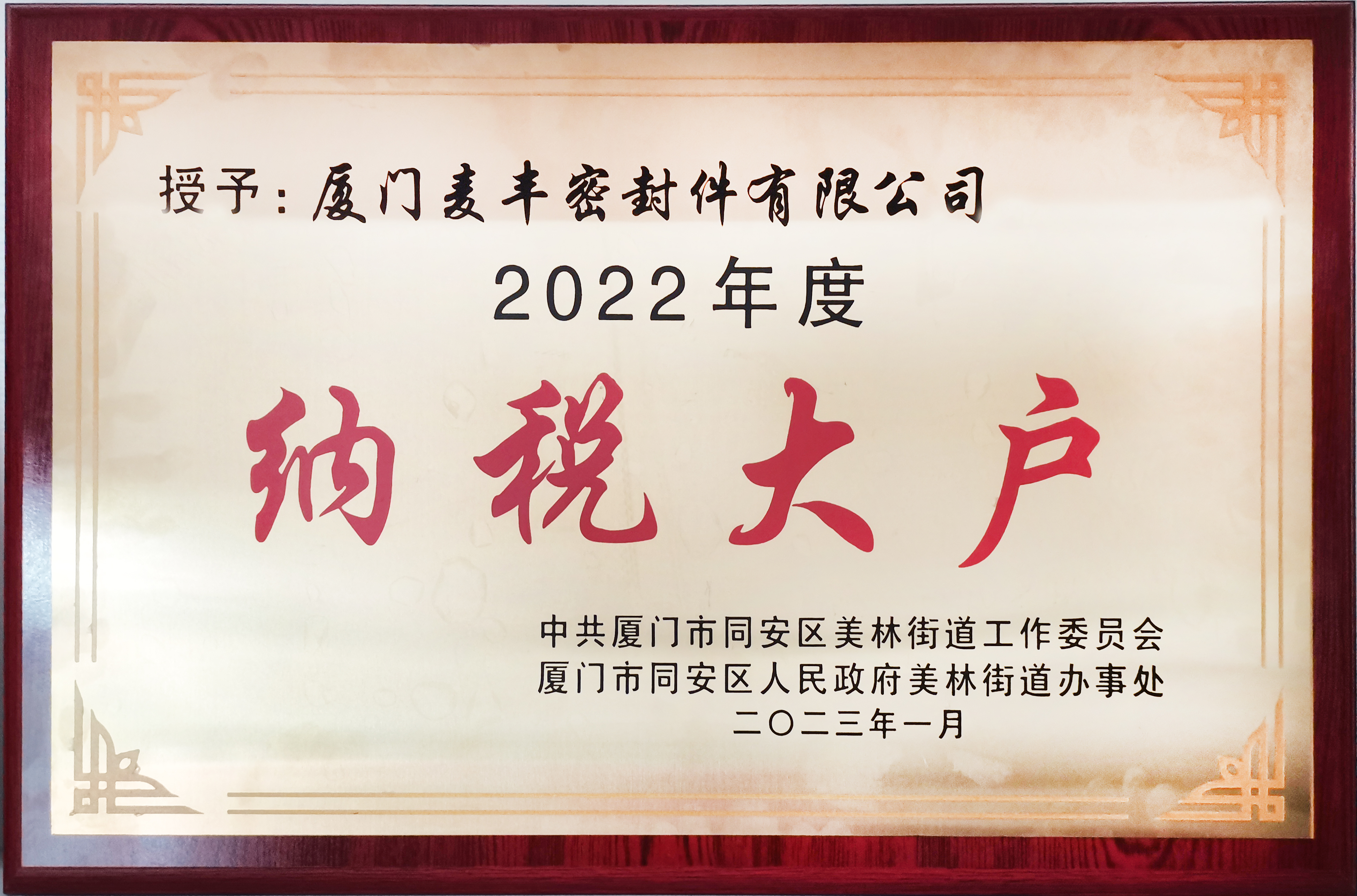 4月19日,美林街道舉辦納稅大戶表彰會,會上,我司榮獲“2022年度納稅大戶”稱號。