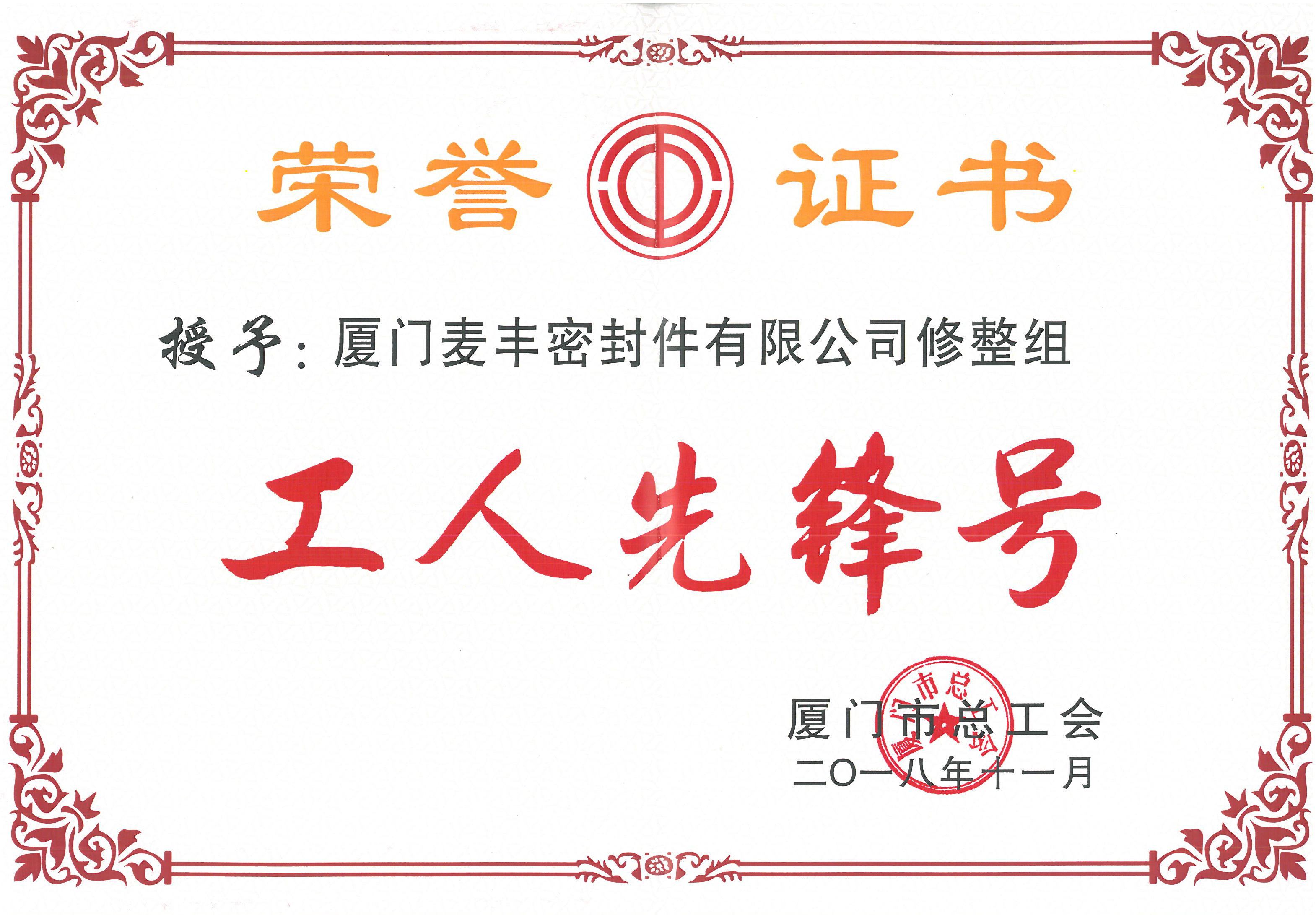 1月7日麥豐公司修整組迎來(lái)一件“喜事”——被授予廈門市“工人先鋒號(hào)”榮譽(yù)稱